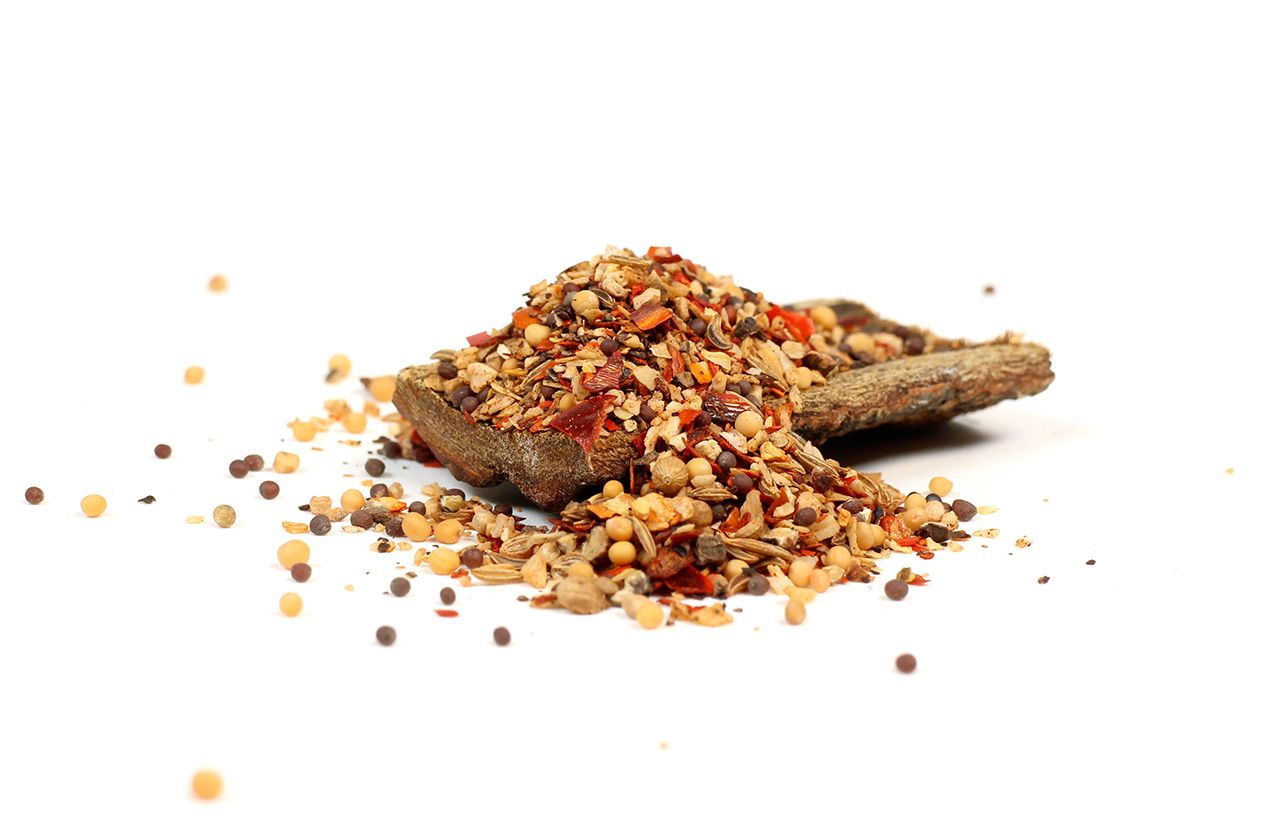Zwiebeln*, Pfeffer* schwarz, Paprika* edelsüß, Senfsaat* gelb, Senfsaat* braun, Koriander*, Paprika* scharf, Kreuzkümmel*, Kümmel*